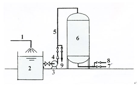 1.含鐵錳地下水管  2.集水地  3.加壓泵  4.射流泵  5.進(jìn)水管